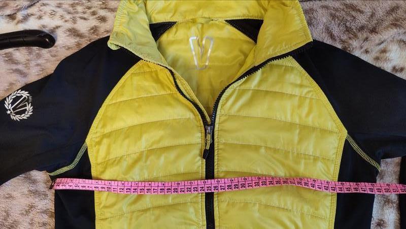 Куртка, ветровка deVat, жовто-чорного кольору, реальнй кольор на ф. 1. Заміри на фото, на зріст 152-160 см. Стан б\у, але у гарному стані.