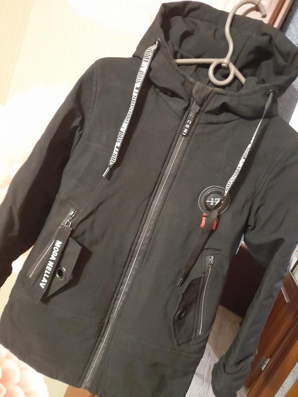 Куртка дитяча , є утеплювач. Стан в цілому гарний але треба зашити кишені. Нам вже не по розміру. Дуже гарна якість , гарна плашівка. Зріст 140. Довжина рукава від плеч шва- 54см. Довжина куртки - 62см. ширина куртки 44см в застібнутому вигляді,полуобхват.