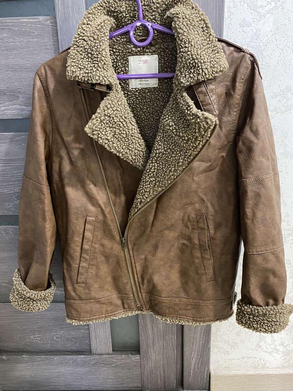 Куртка от бренда Zara приобрела сын в Польше но не угадала с размером, красивый насыщенный коричневый цвет, внутрь искусственный каракуль, рукава на застежке.Размер 152, подойдет на рост и до 160 см. Курточка нова.