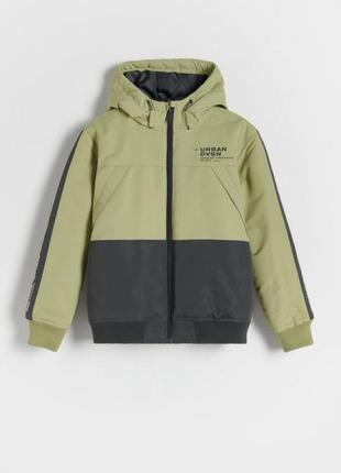 Фирменная классная и качественная курточка. На весну-осень. Стан великолепен, носили несколько раз. Замеры: Рукав от плеча -57, от воротника 70 (вместе с манжетом) Ширина под руками- 50-51 см Вся длина - 61 см Куртка простого фасона из гладкого водонепроницаемого материала. великий каптур низкий воротник-стойка застежка на молнию принт спереду манжеты на рукавах и штанинах на резинке наполнитель из переработанного полиамида.