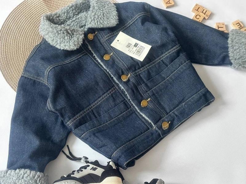Крутая джинсовая курточка 🖤 Джинс 💯 🖤 Застёгивается на пуговицы 🖤 Внутри мех 🖤 Есть два кармана +- 2 см Размер 90(6 шт) 100(5 шт) 110(1 шт) 120(1 шт) рукава без подворота, подвернуть можно до 6 см 90-Длина 39 см Рукав от горла 46 см 100-Длина 40 см Рукав от горла 48 см Ширина 36*2 110-Длина 42 см Рукав от горла 49 см Ширина 38*2 120-Длина 43 см Рукав от горла 50 см Измерения сделаны одной ростовкой Допустимая погрешность +-1-2 см