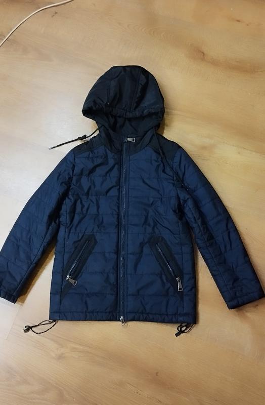 куртка утеплена, болоньєва. всередині підкладка фліс. спинка 57 плечі 36 рукав 50 талія 36.5 ззаду внизу є поріз, не наскрізь і заклеєний зсередини. Колір темно-синій і чорний