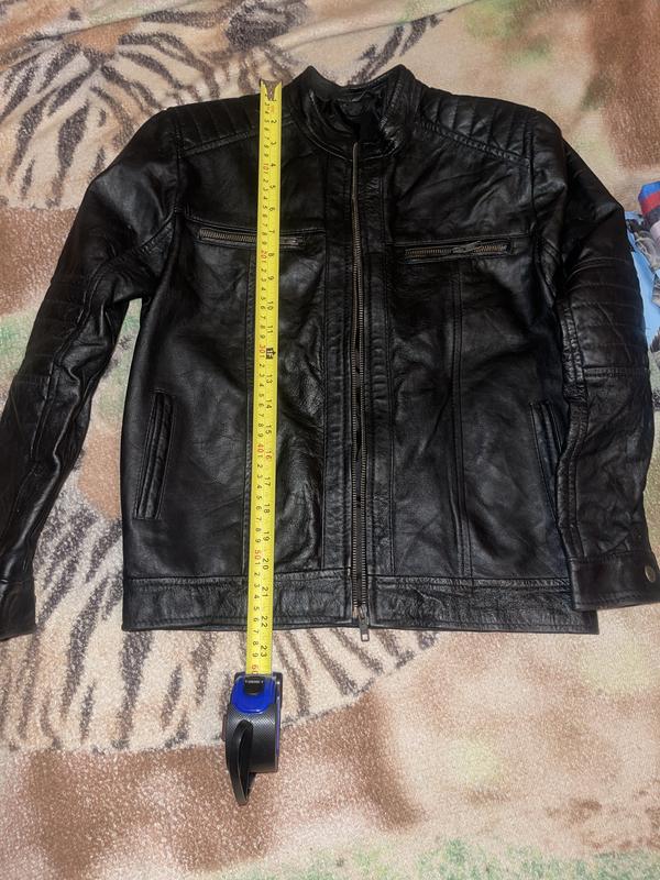 Куртка бомбежная, без утеплителя. Натуральная кожа, размеры на фото, на подростка до 150 см роста. Есть маленькие бушансы, но в носке их не видно. По груди полу обхват 47 см, снизу 42 см.