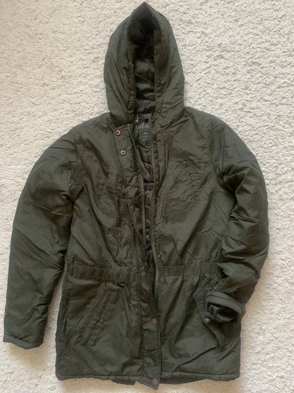 Демисезонная парка,замеры: длина спереди 68 см,зади 72 см, длина рукава 60 см,плечи 36 см, пог 49 см.