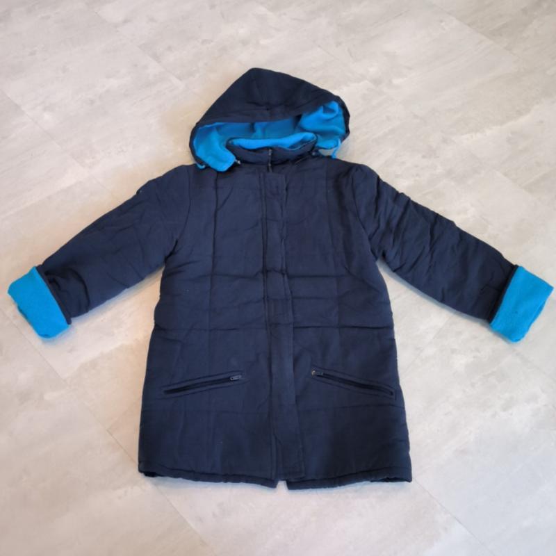 Куртка зимова на хлопчика. Наполнитель - синтепон. Флисовая подкладка. Капюшон отстегивается. Можно носить с подвернутым рукавом и отвернутым. Достаточно длинная.