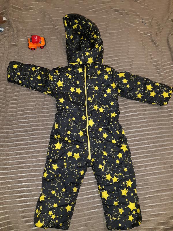 Демисезонный комбинезон на флисе (кроме зоны рукавов,там подкладная ткань) с отстегивающимся капюшоном.Утеплитель силикон,рукава на манжетах. Замеры: Длина от плеча до низа 80 Длина от плеча до линии сиденья (де сходятся ножки)54 длина с капюшоном 105 длина рукава от плеча 35 ширина 37