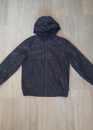 Куртка на весну або осінь для хлопчика 146/152 см Як вітровка, але спереду, ззаду та капюшон підкладка фліс, рукави гладкий поліестер. Стан ідеальний Плечі 35 Рукав 55 ПОГ 47 Довжина по спинці 59