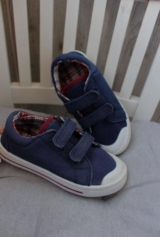 Кеды синего цвета, на липучках. Стан новых. Очень удобные для деток. Подойдут как на мальчика, так и на девочку. Материал - текстиль. Длина стельки 16,7 см.
