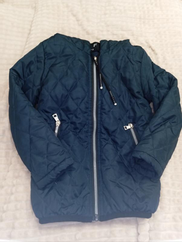 Куртка демисезонная на мальчика темно-синего цвета с капюшоном.Замеры: Длина 49 см; полуоюхват плеч 29 см; полуюхват груди 36 см; длина рукава 40 см.
