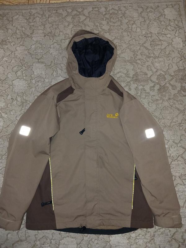 Куртка Jack Wolfskin джек с капюшоном и отстегивающейся подкладкой. Размер на рост 152 (длина 65 см, грудь 53 см, плечи 47 см, длина рукава 53 см) состояние хорошее. Ткань отталкивает воду, не пропускает ветер. Мы носили зимой