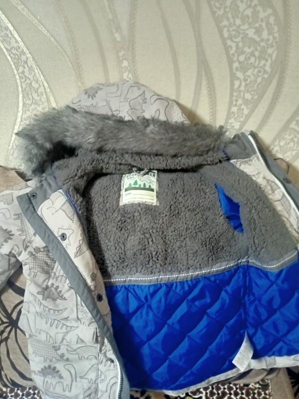 теплая куртка в идеальном состоянии на 2-3 года свет серый с динозаврами