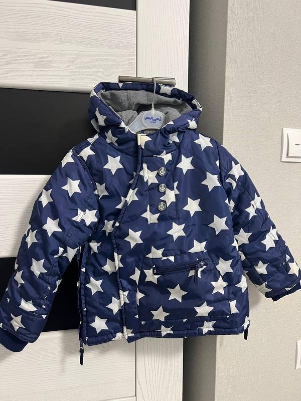 Ширина по груді: 36см Довжина: 46см Рукав: 38см Розмір: 110 Синя зірками демісезонна всередині на флісі Виробник: фабричний Китай