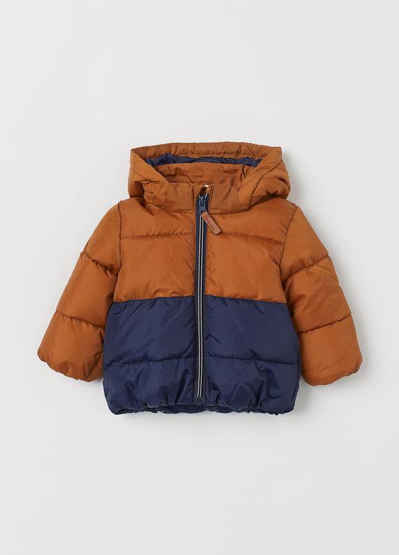 Куртка H&M Сезон : Демисезон Цвет: Комбинированный Состав: верх: 100% полиэстер/подкладка: 100% хлопок/наполнитель: 100% полиэстер Стиль: Кежуал - Утепленная стеганая куртка с воротником-стойкой, съемным капюшоном и молнией спереди с защитой подбородка. - На манжетах и по низу потайные резинки. - На подкладке. Размер: 68 см 4-6 М Рукав от плеча : 25.5 см Длина: 32,5 см Спина : 23 см Обхват груди : 30 см