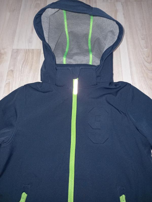 Куртка Софтшелл внутри флис,капюшон съёмный .реальный цвет первое фото Бренд H&M на 7-8л Замеры плечи 31 пог 41 длина 52 рукав 51 состояние отличное один нюанс просто помята ткань возврата нет