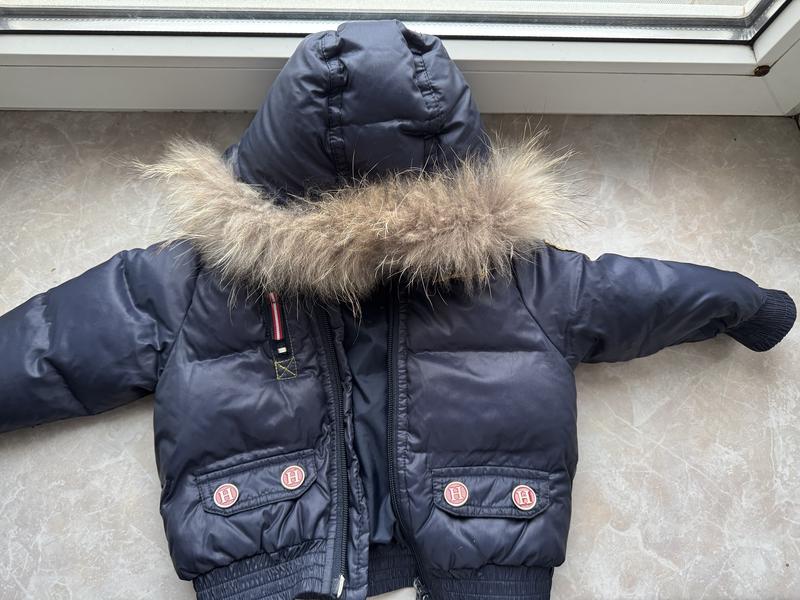 Детская зимняя куртка для мальчика в темно-синем цвете. Характеристики: • Размер: 12M. • Материал наполнителя: REAL DOWN (натуральный пух), обеспечивающий тепло и комфорт даже в морозную погоду. • Детали дизайна: стильный капюшон с натуральным мехом, декоративные элементы с эмблемой “H” на плече, можно расширить рукава для удобного одевания. • Подкладка: имеет фирменную нашивку “Harvard University Cambridge” с аккуратными деталями. • Состояние: куртка выглядит качественно и сохраняет функциональность. Идеальный выбор для холодного времени года, обеспечивает комфорт, стиль и защиту от ветра и холода.