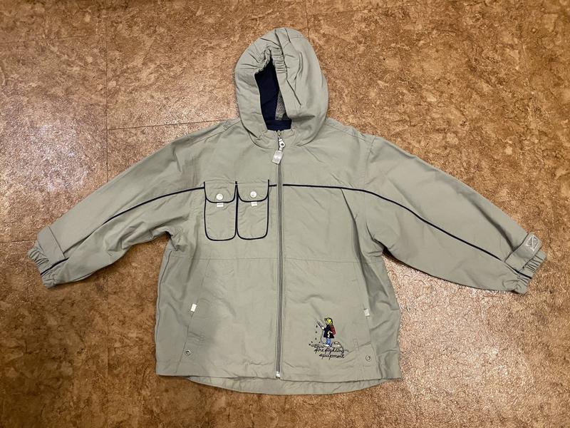 Ветровка ( Германия ), б/в, состояние идеально Размер 122 см Замеры : длина 56 см; ширина 49 см; плечо 13 см, рукав 41 см Состав : полиэстер, подкладка коттон
