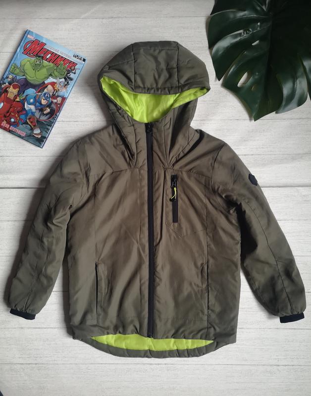 Красивая куртка на тонком синтепоне. Что-то среднее между ветровкой и деми. Есть маленькая зацепка на кармане - виден на последнем фото. Сзади лента не фабричная, была нашита самостоятельно.