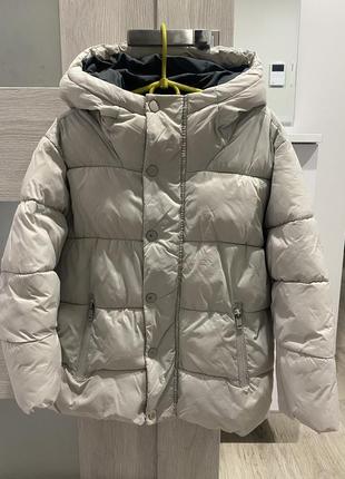 Куртка детская Zara в отличном состоянии. Размер 116. Подойдет для теплой зимы, ранней весны. Удобная, легкая. Длина 50 Рукав 39 Из дефектов- немного стерлась краска на кнопках, последнее фото.