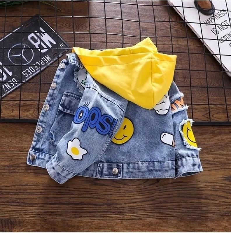 ✏ Стильная джинсовка Унисекс! 🖤 Материал - мягкий джинс 100% и трикотаж двухнитка. 🖤 Застегивается металлическими пуговицами. 🖤 Капюшон не снимается. 🚀Доставка 1-2 дня Размеры Замеры 90(4шт) 100(3 шт) 110(1 шт) 120(2 шт) Размер 90- Длина 35 см Рукав от горла 39 см ширина 35*2 см 100- Длина 47 см Рукав от горла 41 см ширина 36*2 см 110- Длина 41см Рукав от горла 43 см ширина 38*2 см 120- Длина 44 см Рукав от горла 47 см ширина 40*2 см Замеры сделаны одной ростовки Допустима похибка +-1-2 см