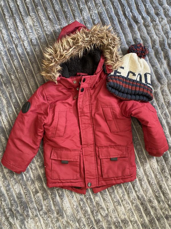 Куртка зимняя размер 2-3 года в хорошем состоянии, шапка в подарок, искусственный мех полностью отщепляется. Цвет универсальный.