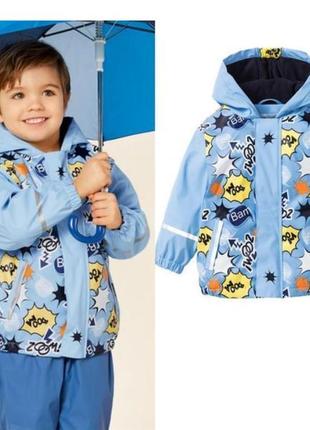 Яркая ветро - и водонепроницаемая куртка для ребенка с застежкой-молнией. Внутри куртка утеплена флисом. Имеет светоотражающие элементы. Хороший вариант на дождливую погоду. Материал: 100% полиэстер. Состояние новой