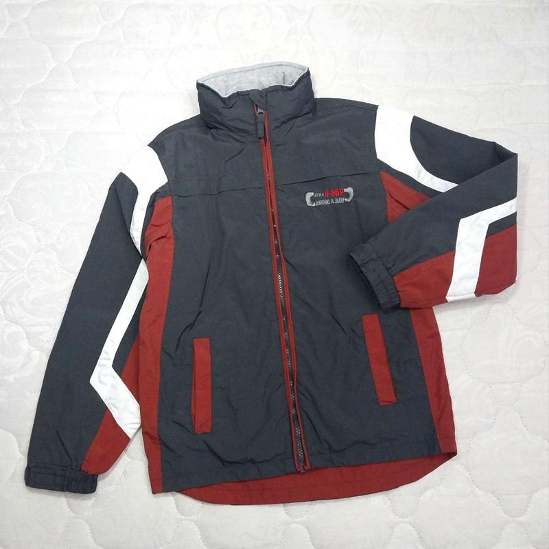 Вітровка з капюшоном, легка курточка на хлопчика, р. 146. Капюшон зйомний, ховається в горловину. Спинка півколом. Плащовка, всередині текстиль. Стан відмінний. Липучки тримають добре. Фірма Here/There. Заміри, см: довжина спереду по блискавці 55, по спинці 61.5, ширина під рукавами 45.5, довжина рукава від плеча 52.5, плече 11.5, ширина плечей 38.