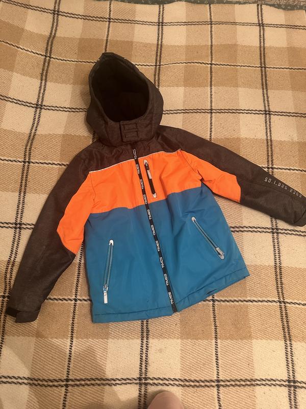 На парня 10-12 лет. Зима термокуртка удобная и продуманная, светоотражающая лента, регулируется рукав, внутренняя кулиска- дополная защита от ветра и холода. Длина 59, рукав 54, грудь 45.