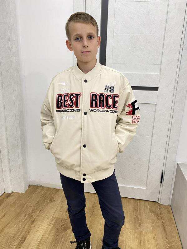 Шикарна куртка бомпер З еко-шкіри ,є утеплення не тонка Якість супер Нова з оф сайту Ріст 140 см