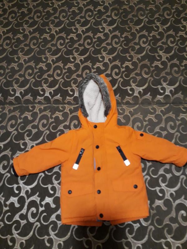 Детская зимняя куртка на 12-18 месяцев. Стан нового. Утеплитель - овчина белого цвета, а на затягиваемого.