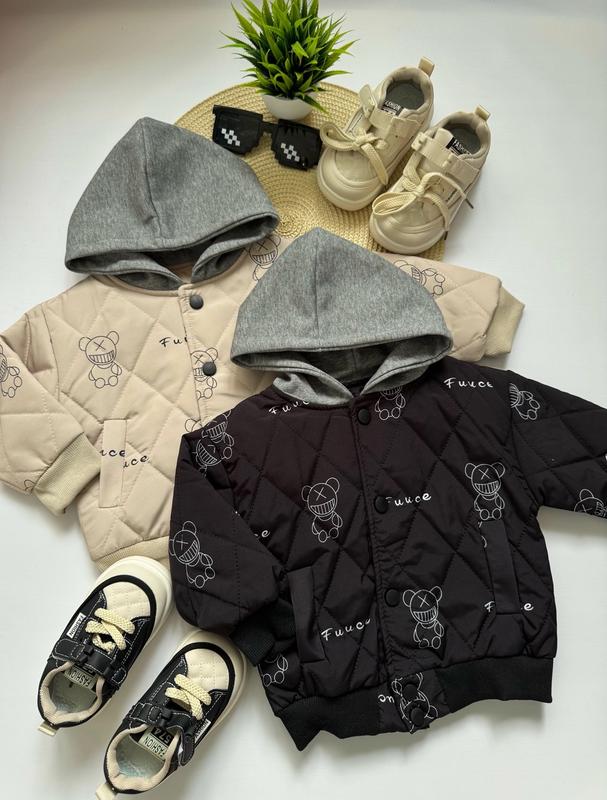РАЗМЕР 80 (3 шт) 90 (3 шт) 100 (3 шт) 105 (4 шт) 110 (4 шт) ✅ Легкий и теплый - идеален для весны ✅ Удобная застежка на кнопки - быстро и легко застегивать ✅ Стильный трикотажный капюшон для дополнительной защиты ✅ Прочный верх из полиэстера – надежная защита от ветра и легкого дождя ✅ Подклад из нейлона для комфортной носки ✅ Утепление тонким слоем синтепона - обеспечивает оптимальное тепло без перегрева ✅ Практичные кармашки для мелочей Замеры: р.80 - длина 32 см, ширина 33 см, рукав от горла 32 см р.90 - длина 34 см, ширина 33 см, рукав от горла 34 см р.100 - длина 37 см, ширина 36 см, рукав от горла 36 см р.105 - длина 40 см, ширина 37 см, рукав от горла 39 см р.110 - длина 42 см, ширина 38 см, рукав от горла 42 см