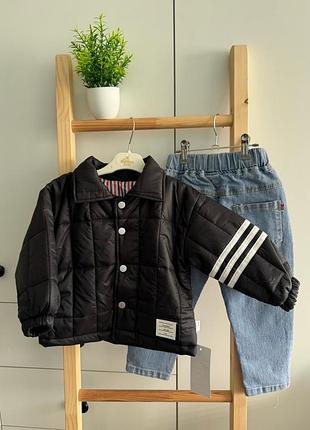 ЦІНА 645 грн Бомбер 😍 ✅ Стьоганий дизайн з квадратним візерунком – модний вигляд та додаткова теплоізоляція. ✅ Контрастні смуги на рукаві – додають спортивного стилю та роблять бомбер яскравішим. ✅ Стильний комірець – забезпечує додатковий захист від вітру та додає елегантності. ✅ Кнопкова застібка – проста у використанні, дозволяє дитині легко самостійно вдягати куртку. ✅ Підкладка з кольоровою смужкою – додає оригінальності та стилю навіть зсередини. ✅ Еластичні манжети – надійно захищають від холоду та вітру. ✅ Невелика брендова нашивка на нижній частині – підкреслює сучасний дизайн. Заміри: р.80 - довжина 36 см, ширина 36 см, рукав від горла 36 см р.90 - довжина 38 см, ширина 37 см, рукав від горла 38 см р.100 - довжина 40 см, ширина 38 см, рукав від горла 40 см р.110 - довжина 42 см, ширина 40 см, рукав від горла 42 см р.120 - довжина 43 см, ширина 41 см, рукав від горла 44 см фото 3-9 реал арт45