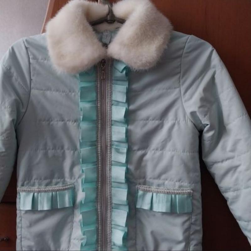 Весенняя куртка отличного дизайна для девочки, рост 134 см,стан отличный. Длина изделия по спинке-50 см Дл.рукава-48 см ПОГ-39 см Воротничок на куртке снимается, куртка имеет два кармана.