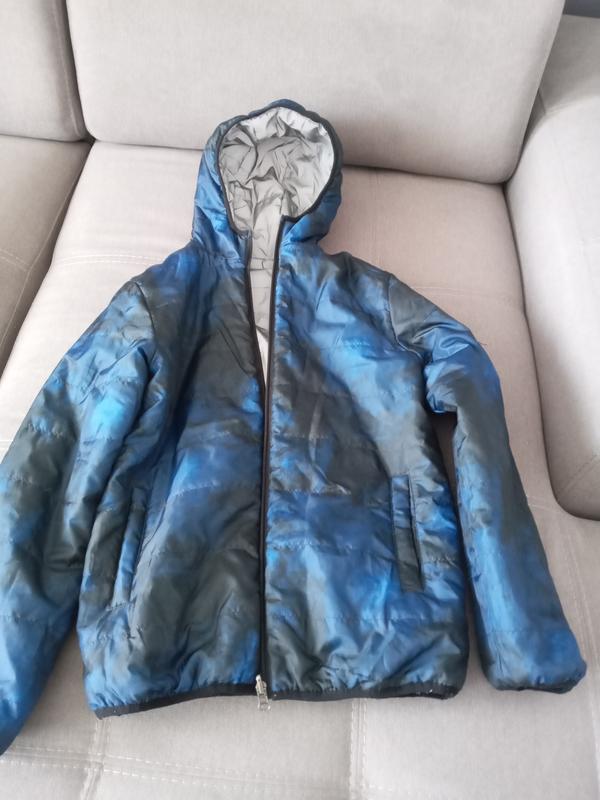 Не промокает, не продувает.Длина спинки 68см,ПОГ 50см,ПОБ 50см,длина рукава 63см Куртка двухсторонняя.