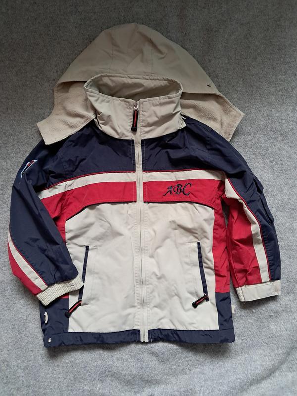 Куртка демисезон 8-9 лет, не промокает, не продувает, на флисе. Капюшон отстегивается грудь 44, длина 56, плечи 36, рукав 42