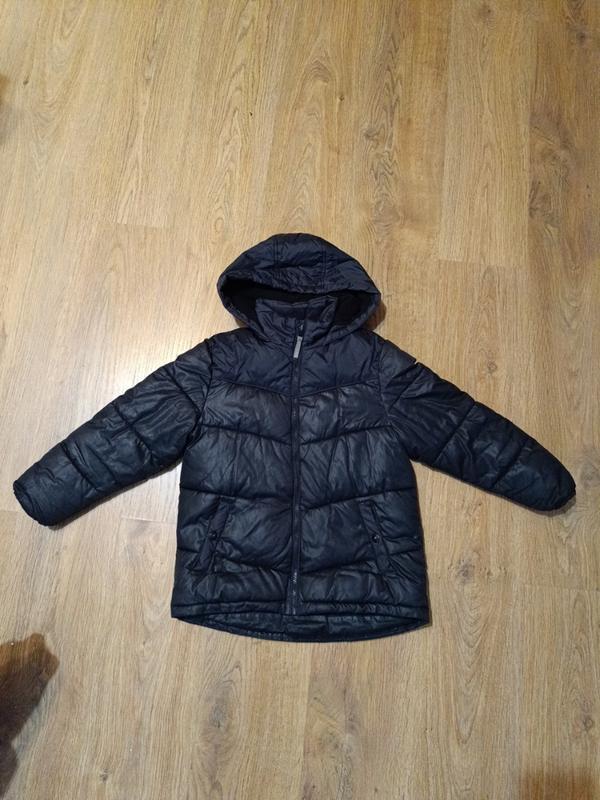 Детская куртка George 8-9 years, рост 128-135 см, на рукаве пятно от клея, и на кнопках покрытие зелено, в цене учтены. Замеры поверх: плечи 38 см, плечо 11 см, рукав 47/34 см, ширина по груди 48 см, ширина по низу 48 см, длина спереди 57 см, сзади 62 см.