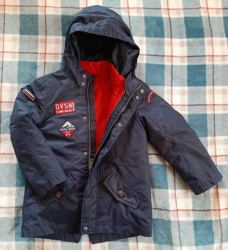 Куртка Palomino в идеальном состоянии. Качество просто отличное! Модель состоит из двух частей: верхняя куртка из плотной ветронепродуваемой,водоотталкивающей ткани с тонкой полиэстеровой подкладкой и нижняя куртка из полиэстера с тонким слоем наполнителя, которая защелкивается до верхней на две молнии. В зависимости от погодных условий, Вы или прищепываете ее ребенку, или снимаете. Защелка на молнию и кнопки. Два боковых кармана на пуговицу. Одна внутрішня кишеня. Капюшон не отщепывается.Защита подбородка. Рост 116 см. Замеры: Длина изделия от горловины спереди-46 см Длина сзади-55 см Плечи-33 см Ширина-40 см Длина рукава-41 см Внутренний шов рукава-30 см. Полностью соответствует фото!