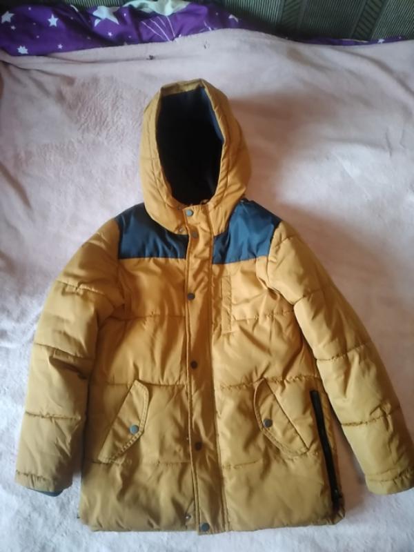 Куртка на флисовой подкладке, наполнитель синтапон. Тепленькая. Состояние на триечку. Возможно еще раз следует будет постирать. Капюшон не отстегивается. Все кнопки и молнии работают. Карманы цели. Разошли швы под подмышками следует зашить.В цене учтены.В целом нормальная функциональная куртка. Длина от плеча до низа 66см длина рукава от плеча 53см ширина подмышками 45мы
