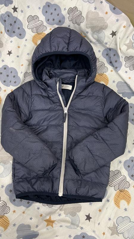 Куртка на 5-6 лет. Очень приятная, на ребенка 116-124см Подкладка синтепон, легесечка. Капюшон отстегивается. На рукаве есть дефект - на локте потертости, фото добавок