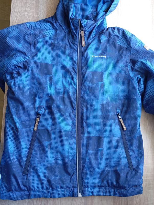 Куртка на мальчика, синего цвета, подкладка черного цвета, теплая на флисе. Длина 59см, длина рукава 51см.