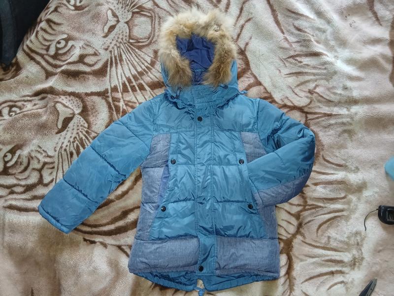 очень теплая зимняя курточка, капюшон отстегивается, мех на капюшоне тоже отстегивается, теплая флисовая подкладка, есть карманы, состояние идеальный но есть один маленький дефект- на левом рукаве маленькая дирочка на фото видно( при носке незаметно), замеры на фото. Это курточка в которой ваш ребенок точно не замерзнет.