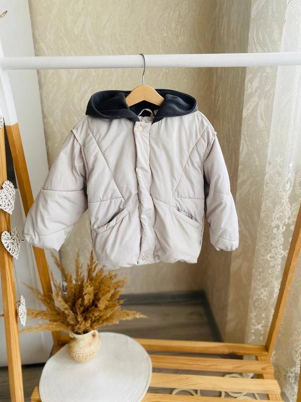 Осіння куртка z@ra на 3-4 роки. (Заміри: довж 44 см, шир 38 см, рукав від шиї 44 см) Стан хороший (збитий наповнювач, є плямки дві . 💰Ціна - 230 грн.