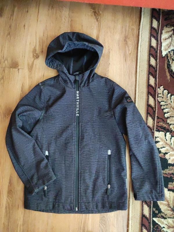 Куртка для мальчика, на рост 140 см, осень, на флисе, не промокает, с капюшоном. Длина от плеча: 57 см, плечи: 33 см, талия: 41 см, рукав от плеча: 51 см.