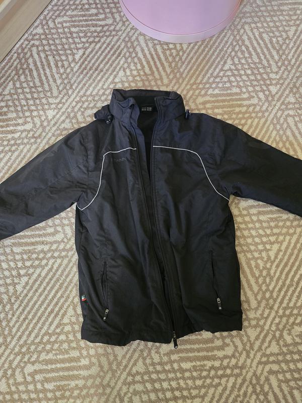 куртка в очень хорошем состоянии, со светоотражающими элементами. все замки рабочие. имеет скрытый капюшон в ячейке. замеры: длина 60 см, рукав 51 см.