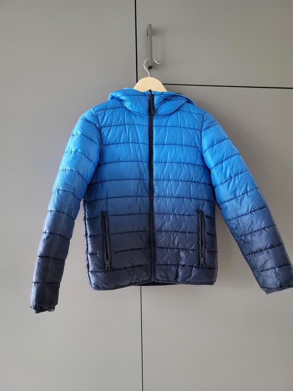 Дутая куртка с красивым градиентом от Next. Демисезон. Легкая, но теплая. Размер 146см. Имеется нюанс-рисенький порез на рукаве.