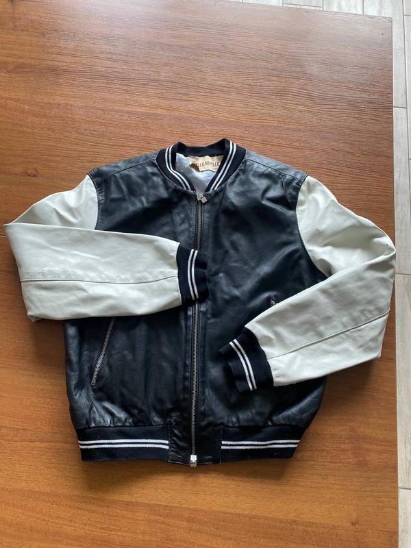 Бомбер на мальчика, в отличном состоянии, без нюансов. материал верха кожа натуральный. Был привезен из Европы. размер где-то на 8-9 лет. точные замеры по запросу.