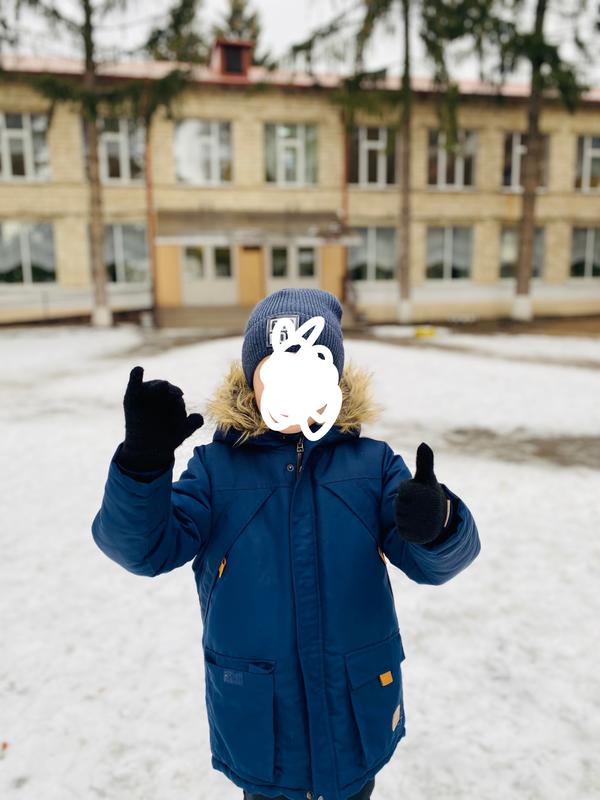 Куртка в идеальном состоянии, размер указан 131-143 см. Ткань водоотталкивающая. Цвет темно синий. Капюшон глубокий. Замер: длина 61 см, ПОГ 46 см, длина рукава 50+ манжет 2 см. Надсилаю.