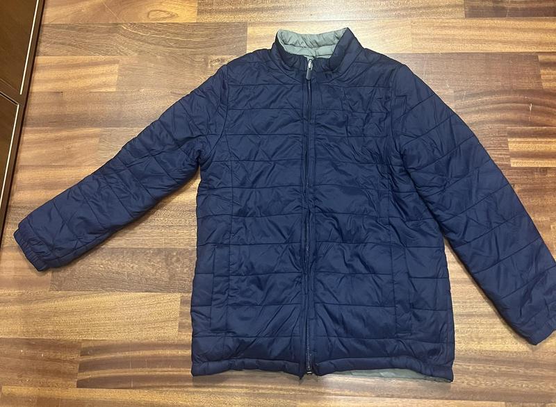 Куртка дитяча двостороння. З утіплювачем. Має можливість носити на вивіріт, має двосторонні кармани та перевертаючий бігунок. Друга сторона оливкового коліру. В ідеальному стані.