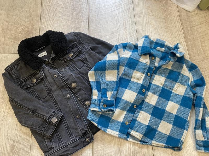 Джинсовка графітового кольору Тепла сорочка бірюзового кольору Одяг на 1,5-2 роки