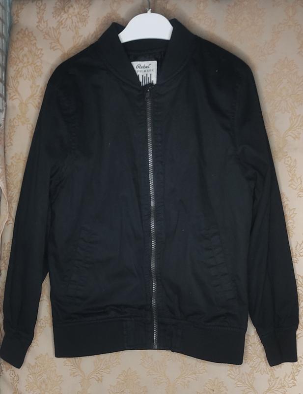 Черная текстильная куртка бомбер на мальчика 9/10 лет, ориентируйтесь по замерам: Длина рукава от плеча -50 ширина -44 длина от плеча общая -50