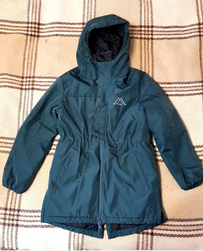 Куртка Kappa демісезонна, всередині пояс регулюється резинками, куртка на блискавці. Розмір 140. Рукав 52см, плечі 39см, бюст 47см, довжина 66см. В ідеальному стані.